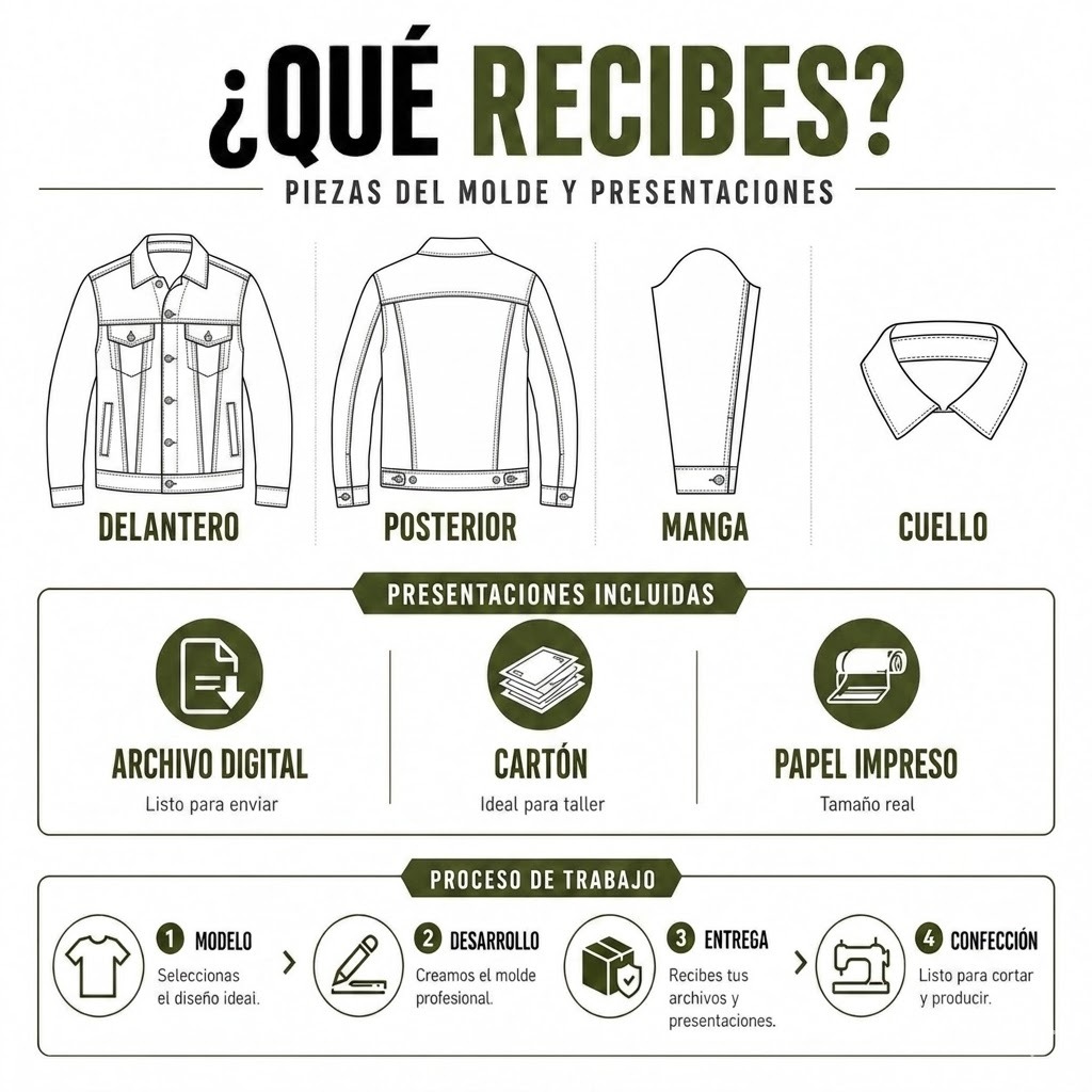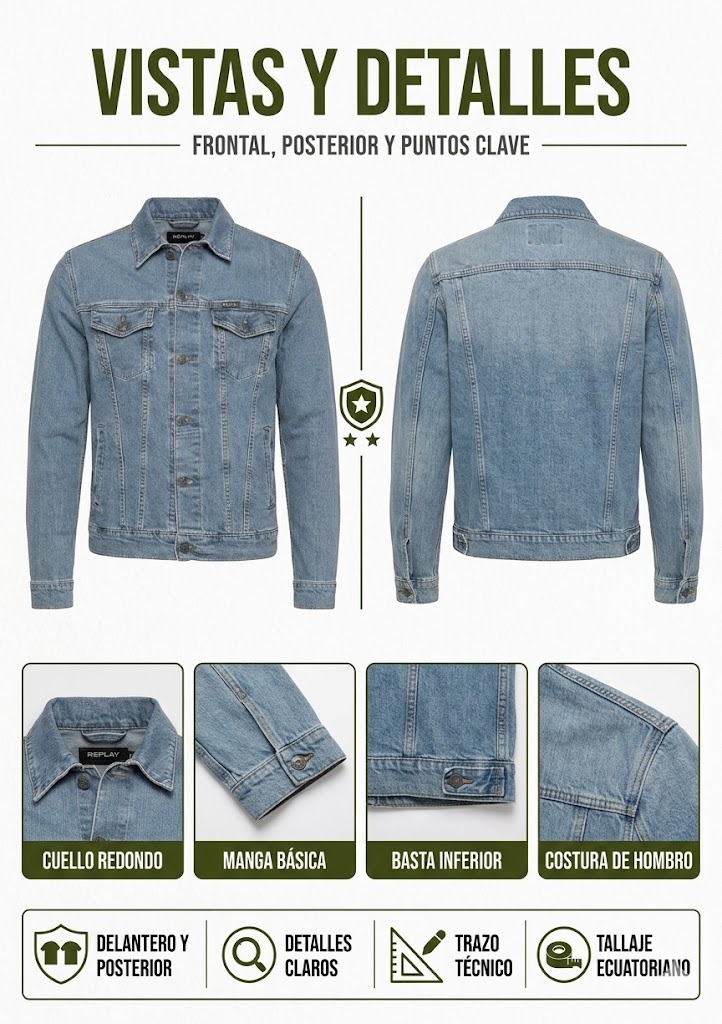 Molde Chompa Clásica Jeans Denim Hombre. Diseño Patronaje y Escalado.