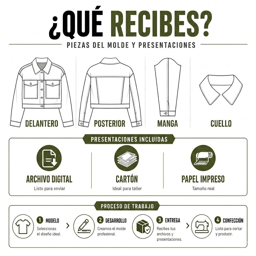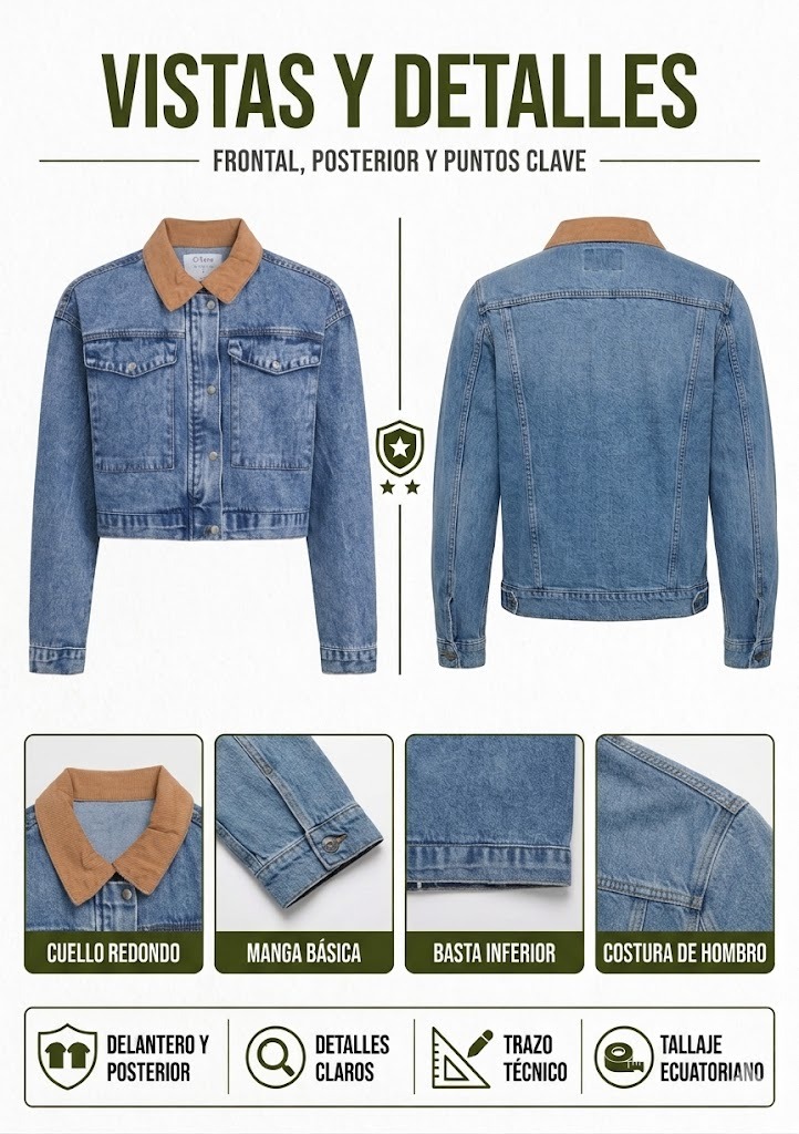 Molde Chompa Clásica Jeans Denim Mujer.Diseño Patronaje y Escalado.