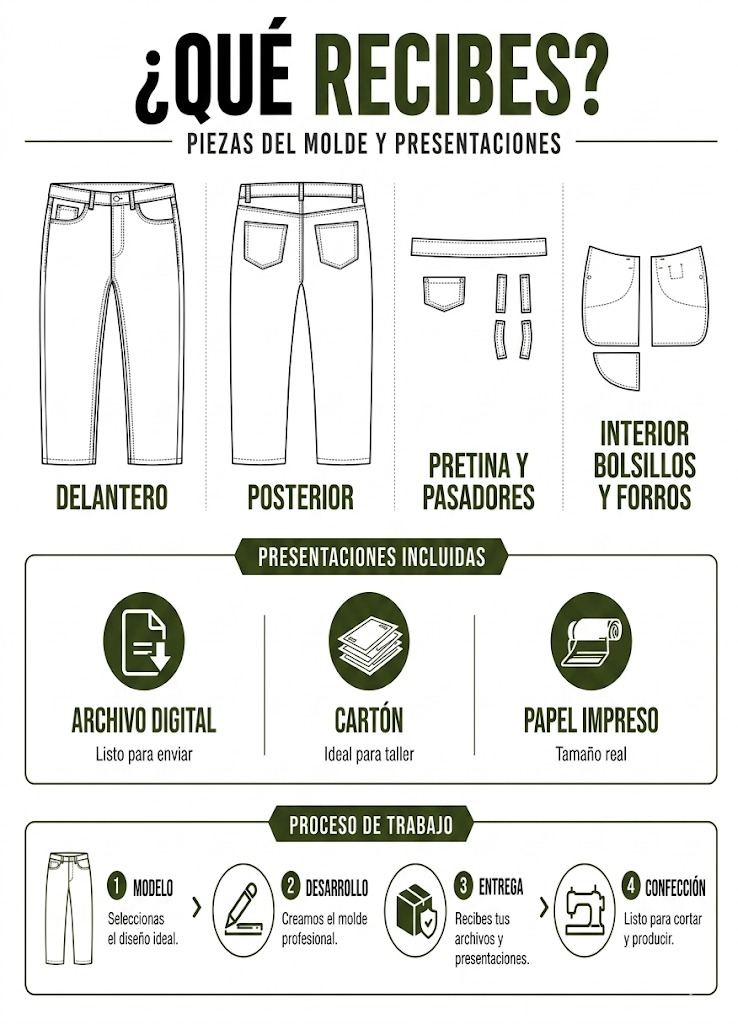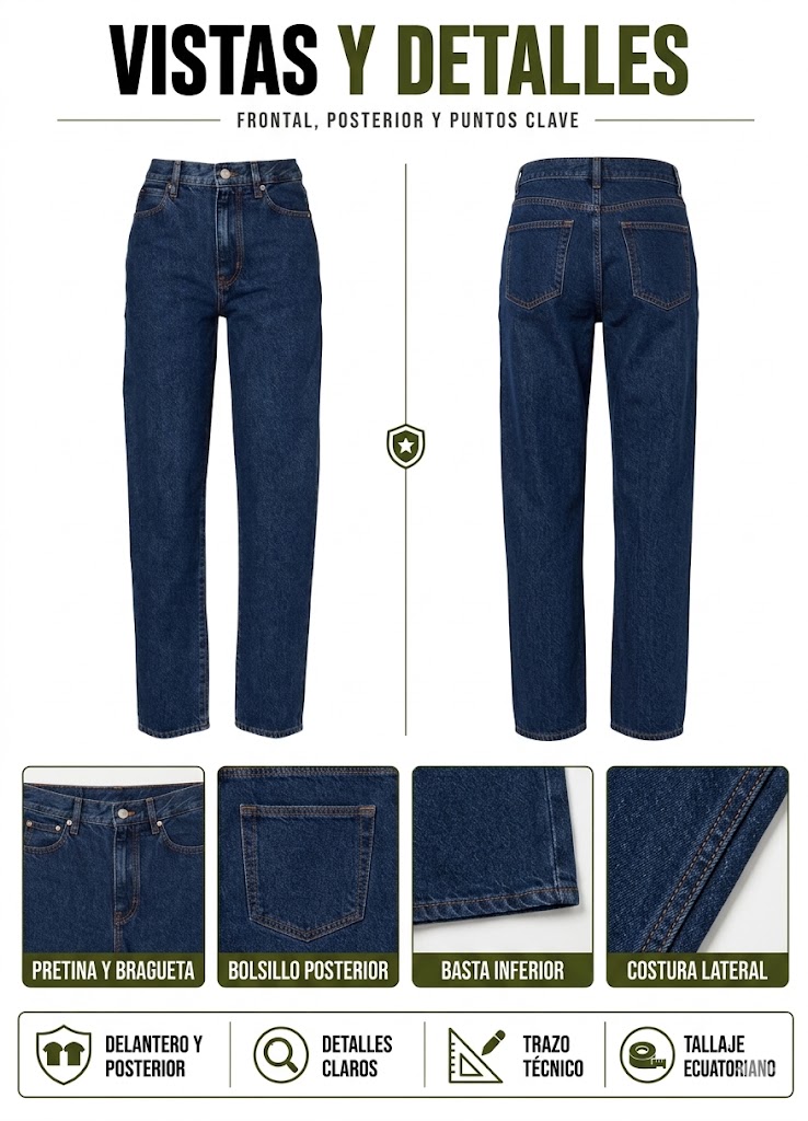 Molde Pantalón Clásico Jeans Denim Mujer. Diseño Patronaje y Escalado.